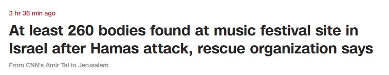 据美国媒体最新报道,当地时间10月8日,以色列救援服务组织Zaka称,以色列当地一音乐节7日遭哈马斯袭击后,现场发现至少 260 具尸体。