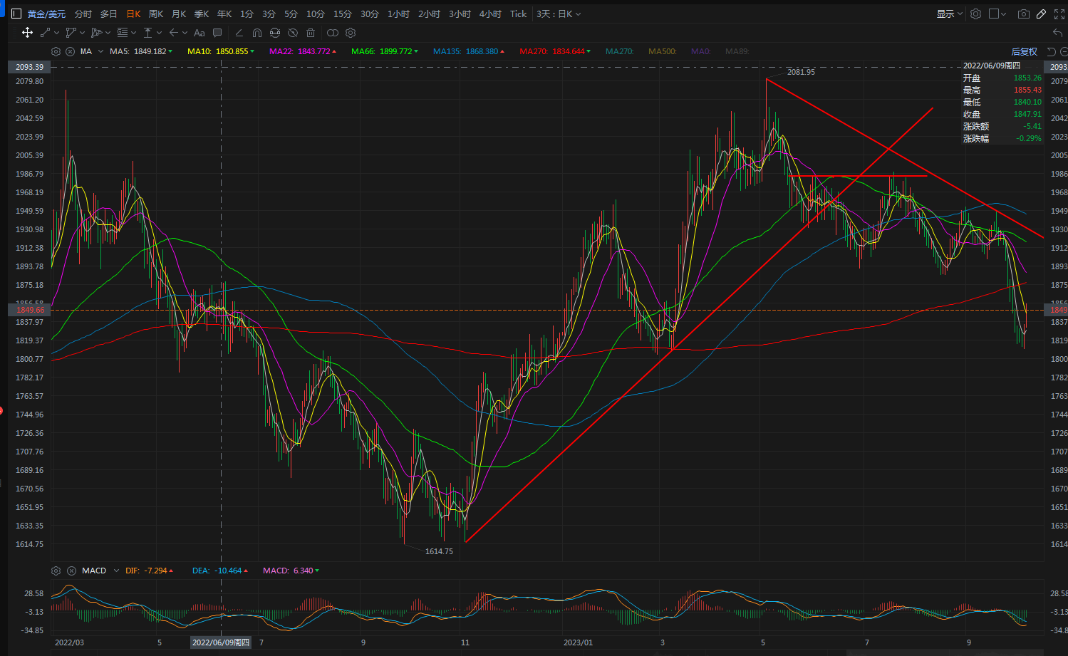 点位上综合多周期量化形成压力:1872-75-83 支撑52-40-32
