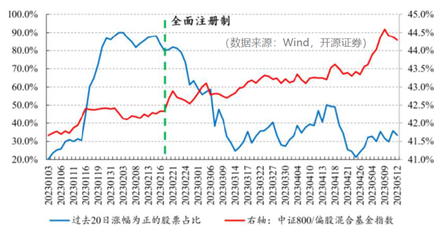 从今年2月17日A股开始实施全面注册制以来,我们观察到A股市场涨指数不涨个股的天数增加,市场风格更偏指数行情。