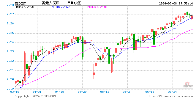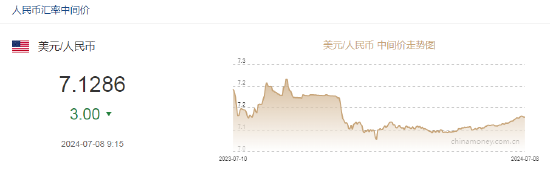 7月8日,人民币(7.2684, -0.0001, -0.00%)中间价报7.1286,上调3点,上一交易日中间价报7.1289。