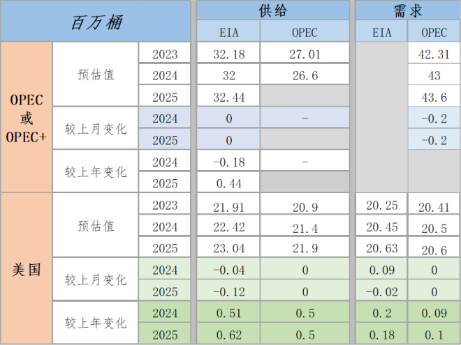 图2:三大月报OPEC和美国供需预期