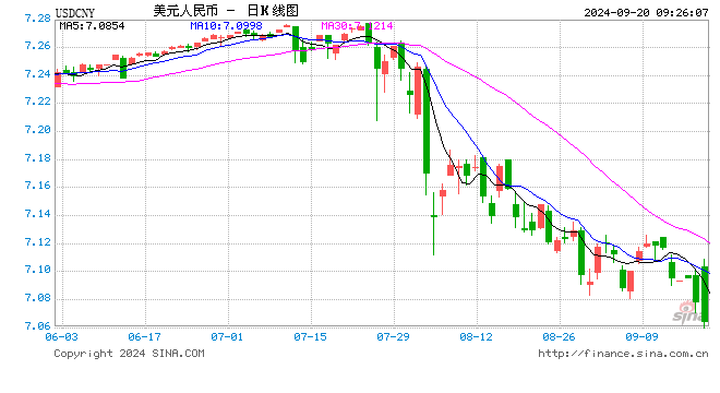 9月20日,人民币(7.0640, -0.0140, -0.20%)中间价报7.0644,上调339点,升值至2023年5月29日以来最高,升幅创2023年3月20日以来最大!上一交易日中间价报7.0983。