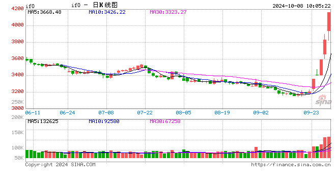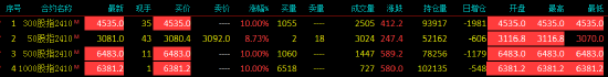 2024年10月8日,股指期货全线涨停,上证50股指期货(IH)、中证500股指期货(IC)、中证1000股指期货(IM)、沪深300股指期货(IF)主力合约均封涨停板,涨幅10%。