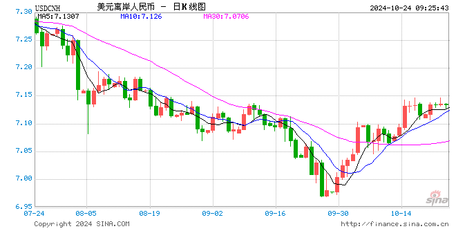 10月24日,人民币(7.1325, 0.0085, 0.12%)中间价报7.1286,下调41点,上一交易日中间价报7.1245。