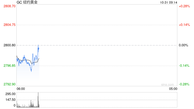 10月29日,COMEX黄金盘中拉升,报收2787.4美元/盎司,涨幅1.14%。国内SHFE金夜盘突破前高,报收634.96元/克,涨幅0.98%。